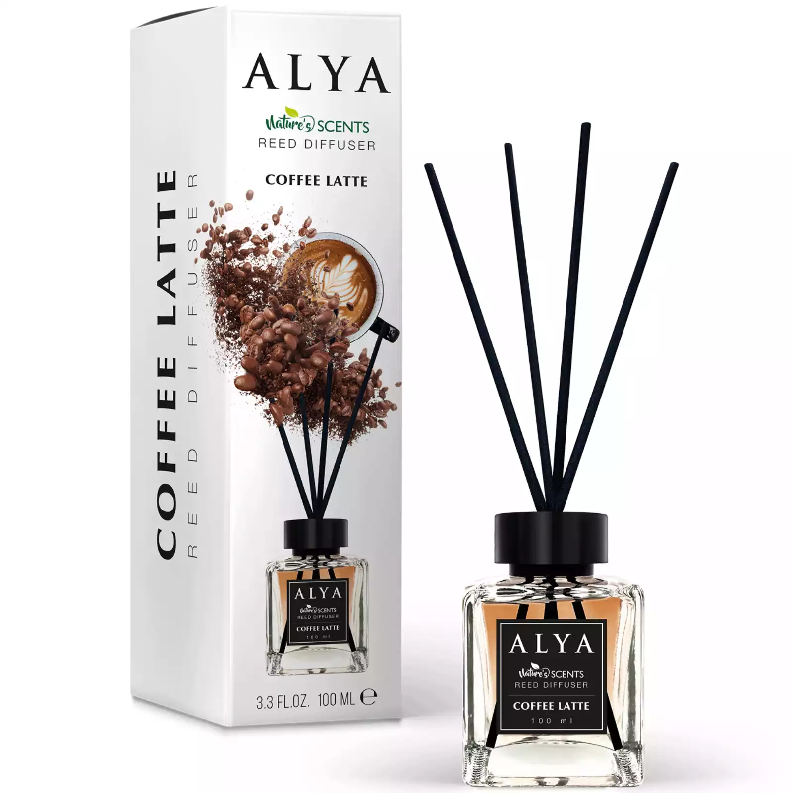 Alya „Kavos Latte“ namų kvapo difuzorius – jaukumo ir šilumos kupinas aromatas, kuris namus pripildo šviežiai paruoštos kavos su pienu kvapu. Sodrios kavos natos susilieja su švelniu pieno kremiškumu, sukurdamos malonią ir raminančią atmosferą. 100 ml buteliuke esantis aromatinis skystis per medinius pagaliukus tolygiai skleidžia kvapą kelias savaites. Stilingas dizainas puikiai dera tiek moderniame, tiek klasikiniame interjere.