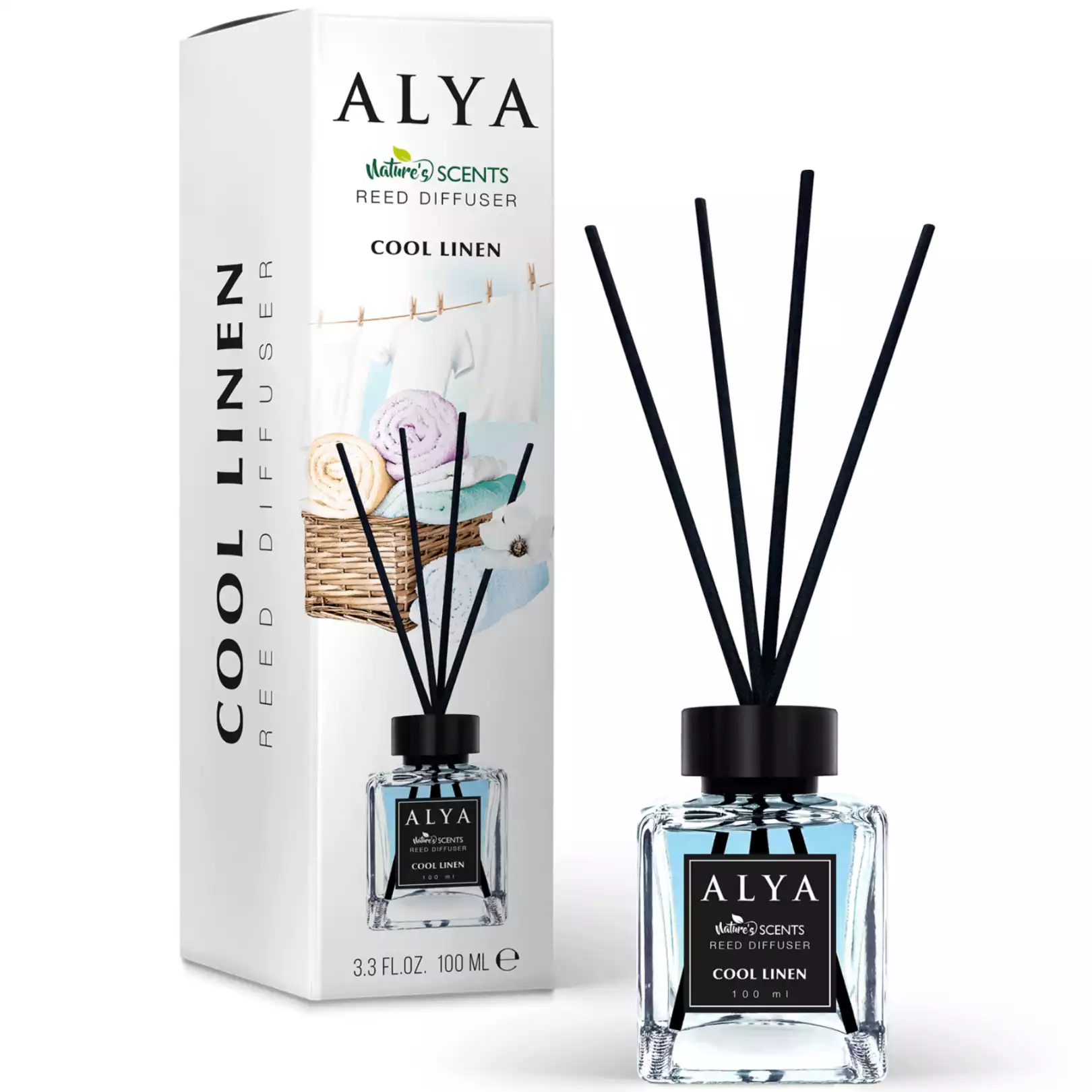 Atraskite gaivos ir ramybės pojūtį su Alya namų kvapų difuzoriumi „Cool Linen“ (100 ml).