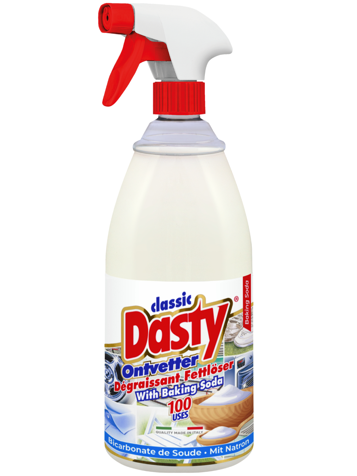 Priemonė tinka daugiau nei 100 panaudojimų ir yra itin universali. Ji veiksmingai valo virtuvės įrangą, buitinius prietaisus, baldų audinius, kilimus, automobilių apmušalus, taip pat dviračius, motociklus ir įvairius įrankius.