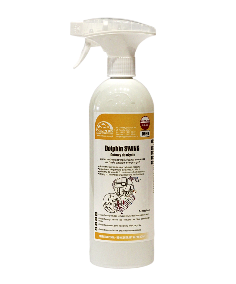 Dolphin natūralus oro ir patalpų gaiviklis „Swing“ – profesionalaus lygio aromatas, sukurtas eterinių aliejų pagrindu. 750 ml purškiamas gaiviklis greitai pašalina nemalonius kvapus ir pripildo patalpas gaivia, energijos suteikiančia atmosfera. Natūralūs ingredientai užtikrina švelnų ir ilgai išliekantį aromatą, kuris tinka namams, biurams, parduotuvėms ar viešosioms erdvėms. Sudėtyje nėra kenksmingų cheminių medžiagų – produktas draugiškas aplinkai ir gyvūnams, sukurtas profesionaliam naudojimui.