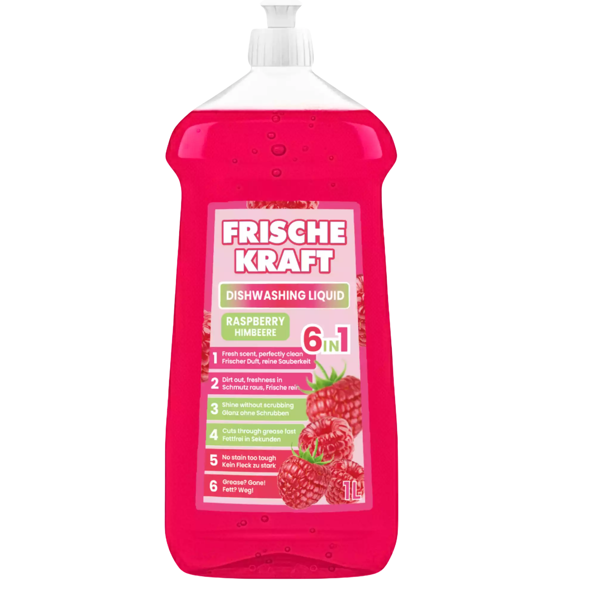 Ryškus, vaisiškas aviečių aromatas suteikia malonią švaros gaivą, o tiršta sudėtis užtikrina ekonomiškumą: nedidelis kiekis pakanka puikiam rezultatui. Ploviklis tinkamas visų tipų indams, stalo įrankiams ir virtuvės reikmenims. Puikus pasirinkimas tiek namams, tiek intensyvesniam naudojimui kavinėse, virtuvėse ar valymo įmonėse.