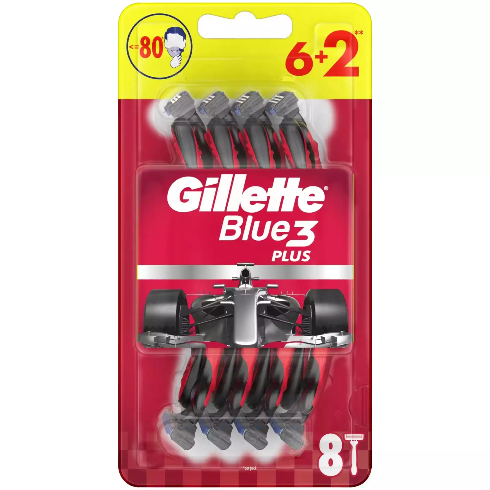 Gillette Blue3 Plus Red vienkartiniai skustuvai (6+2 vnt.) – patogiam ir švariam skutimuisi sukurti skustuvai, užtikrinantys komfortą ir tikslumą. Kiekvienas skustuvas leidžia skustis iki 10 kartų, todėl pakuotė yra itin ekonomiška.