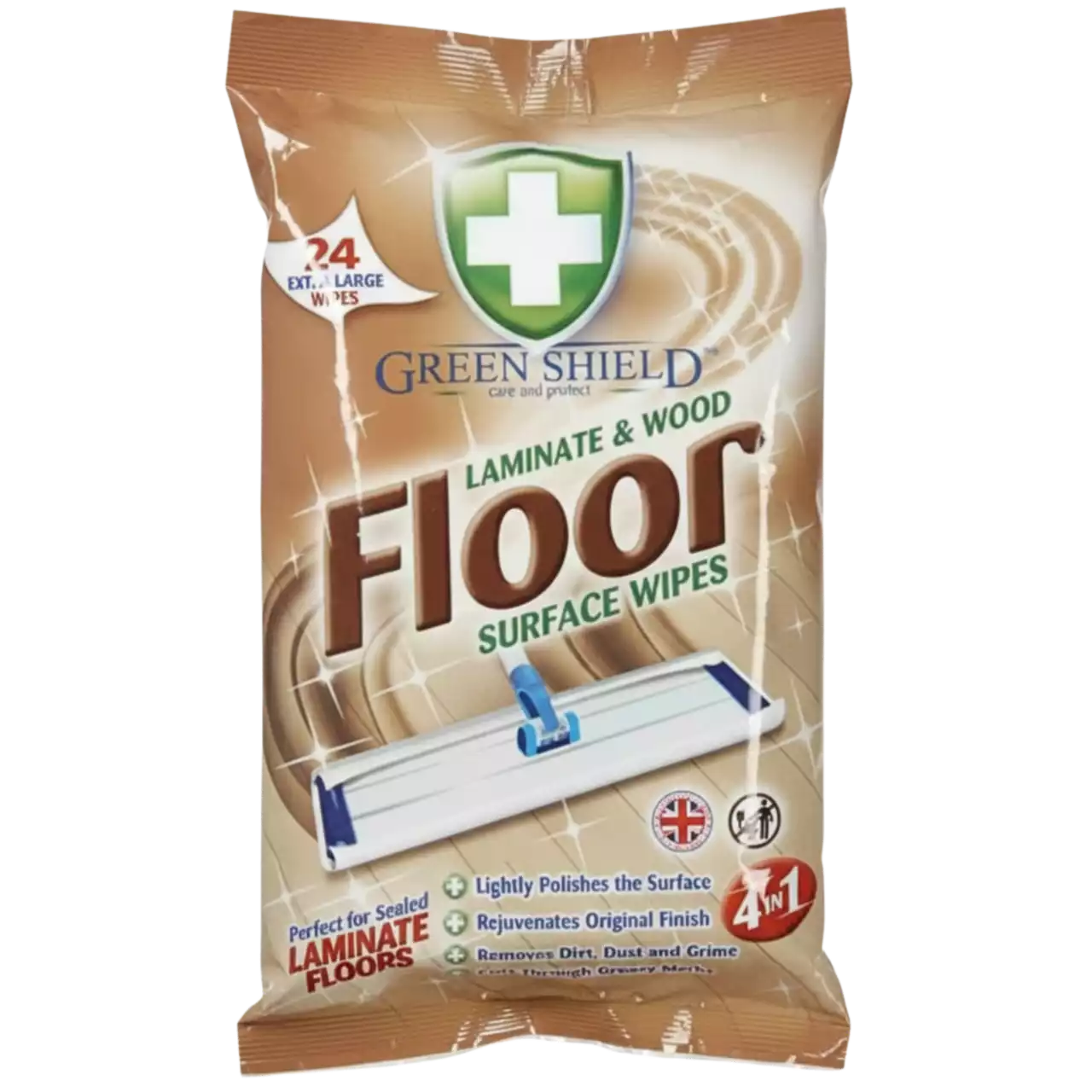 „Green Shield“ drėgnos servetėlės laminuotoms ir medinėms grindims – tai greitas ir patogus būdas kasdien prižiūrėti parketą, laminatą ir lakuotas medines dangas. Impregnuota valomoji formulė efektyviai pašalina dulkes, nešvarumus, dėmes, batų žymes ir kasdienį purvą, tuo pačiu atgaivindama grindų paviršių.