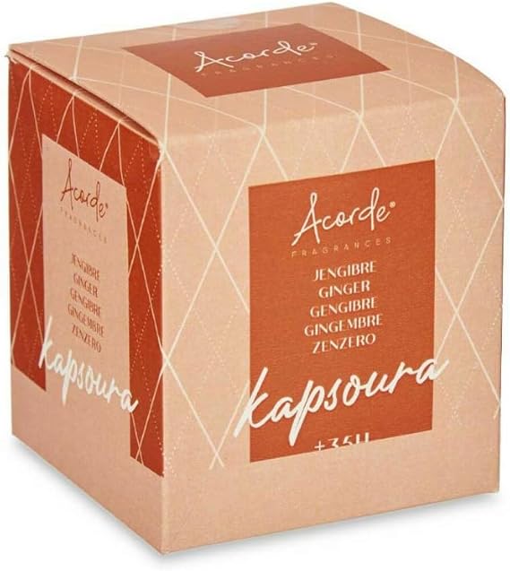 Kapsoure Acorde kvapni žvakė „Ginger“ – elegantiška stiklinėje pakuotėje supilta žvakė, kurios imbiero aromatas suteikia namams jaukumo, šilumos ir gaivos. Pagaminta iš kokybiško vaško, ši žvakė dega tolygiai ir ilgai, pripildydama erdvę maloniu kvapu.