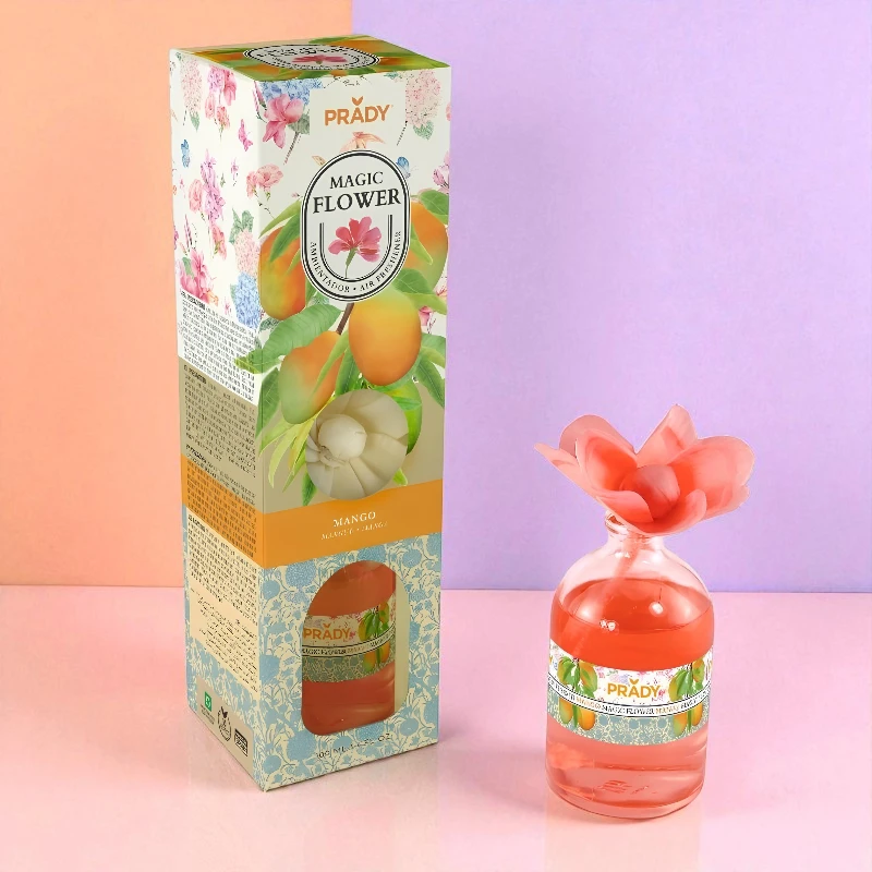 Prady „Mango“ kvapų difuzorius su dekoratyvine gėle suteiks jūsų erdvei sultingą, tropinę ir jaukią atmosferą.