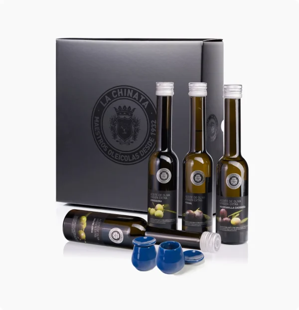 Atraskite tikrą alyvuogių aliejaus pasaulį su išskirtiniu La Chinata degustaciniu rinkiniu (Box Degustación de AOVE) – tai prabangi patirtis gurmanams ir elegantiška verslo dovana, leidžianti pasinerti į keturių aukščiausios kokybės alyvuogių aliejų degustaciją namuose.