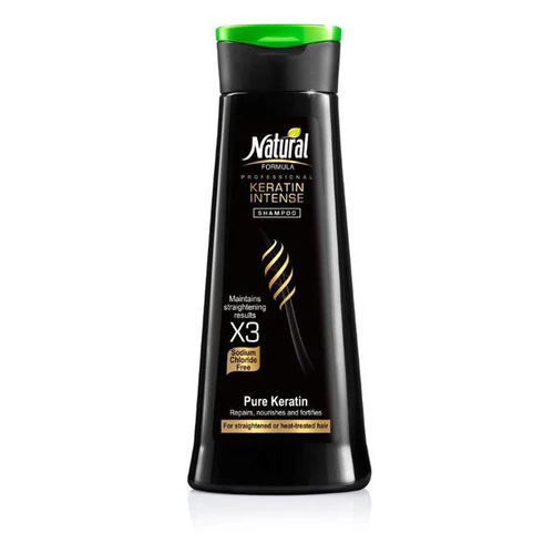 NATURAL Formula „Keratin Intense“ šampūnas – profesionali priežiūra keratinu tiesintiems ar chemiškai apdorotiems plaukams. Sudėtyje esantis grynas keratinas giliai maitina, stiprina plaukus ir padeda išlaikyti tiesinimo rezultatą net 3 kartus ilgiau. Šampūnas be natrio chlorido (druskos), todėl švelniai plauna nepažeisdamas keratino sluoksnio, suteikia žvilgesio ir glotnumo. Puikiai tinka dažnai šiluma formuojamiems plaukams, apsaugant nuo pažeidimų ir sausumo.