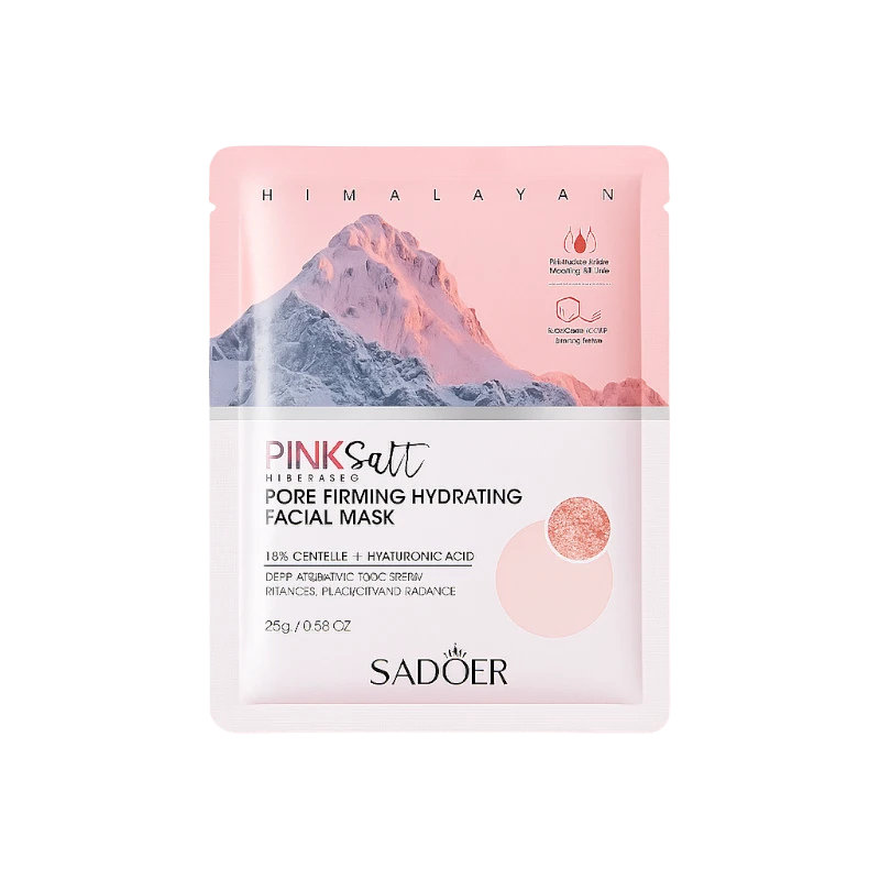 „Sadoer Pink Salt Hydrating & Firming Facial Mask“ – intensyviai drėkinanti ir stangrinanti kaukė su Himalajų rožine druska, hialurono rūgštimi ir 18% Centella Asiatica ekstraktu. Ji suteikia odai gilų drėkinimą, padeda sutraukti poras, atkuria elastingumą bei skatina natūralų spindesį.