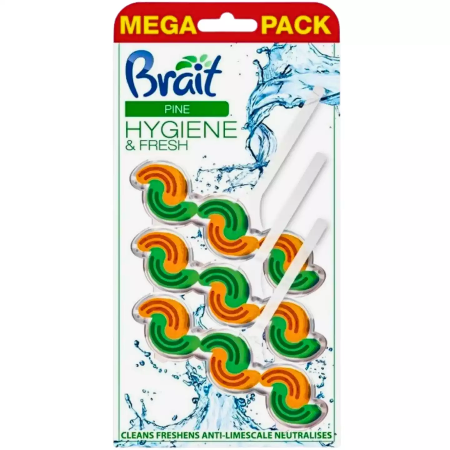 Brait 2 fazių WC kabliukas „Pine“ (3×45g) – tai patogus ir veiksmingas būdas palaikyti švarą ir gaivą tualete be kasdienio vargo. Inovatyvi dviejų fazių formulė užtikrina tiek higieninį valymą, tiek malonų pušų kvapą, kuris išsiskiria kiekvieną kartą nuleidus vandenį.